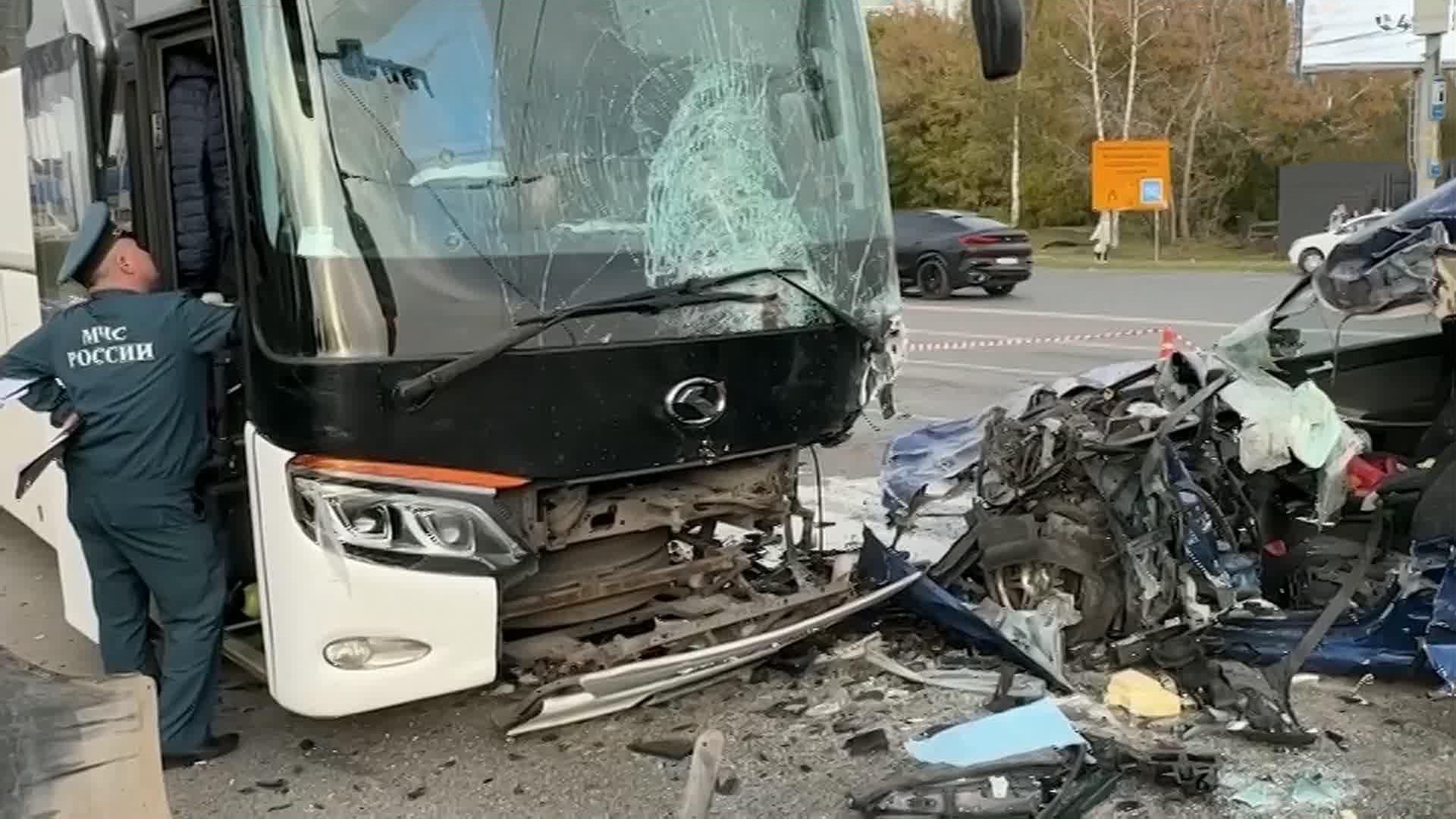На кадрах видно, как синяя «Хендай» игнорирует запрещающий сигнал и на огромной скорости сначала сбивает трёх пешеходов, а затем влетает в рейсовый автобус «Казань-Пермь».В аварии четыре человека погибли на месте, несколько машин получили серьёзные...