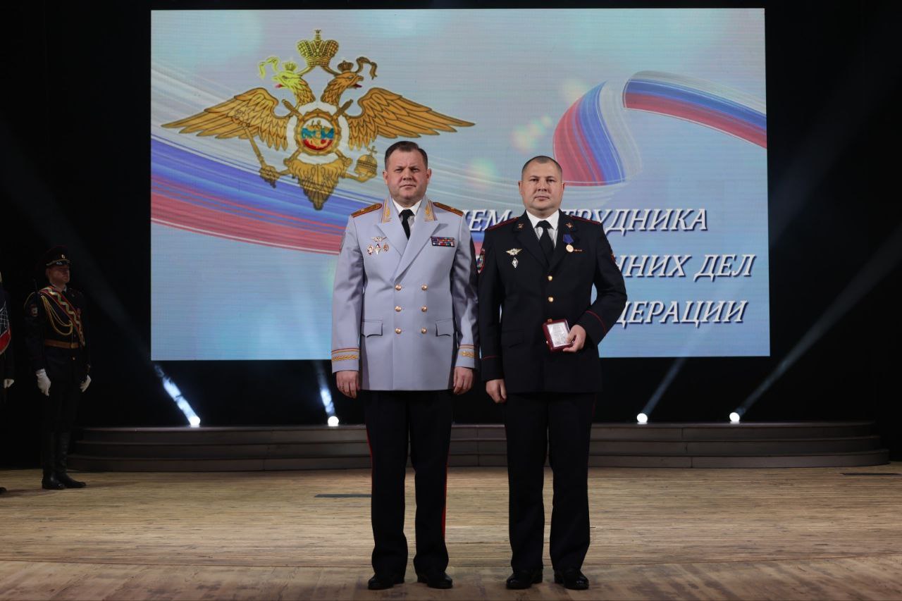 Сотрудникам органов внутренних дел, достигшим высоких показателей в деле укрепления законности и правопорядка, были вручены ведомственные и правительственные награды.