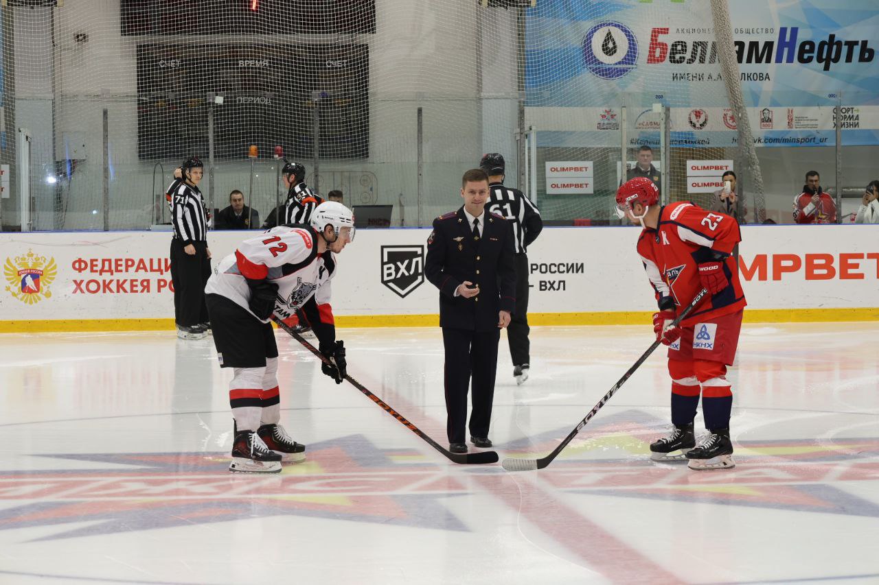 В День сотрудника органов внутренних дел Российской Федерации символическое вбрасывание перед матчем Чемпионата России ВХЛ между командами ХК «Ижсталь» - ХК «Тамбов» произвел сотрудник МВД по Удмуртской Республике, мастер спорта России по стрельбе...