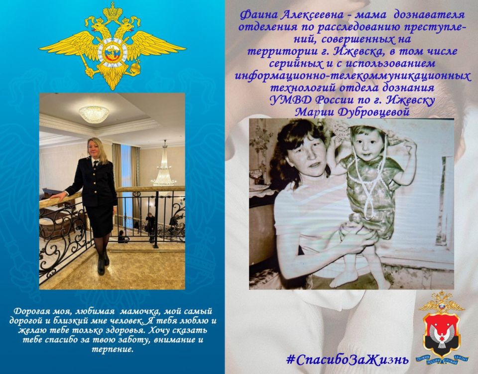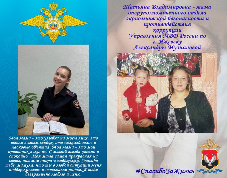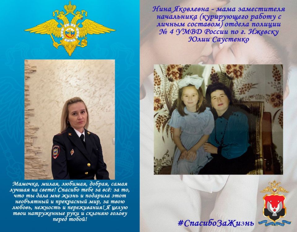 Во Всероссийский День матери полицейские из Удмуртии принимают участие в онлайн-акции #СпасибоЗаЖизнь