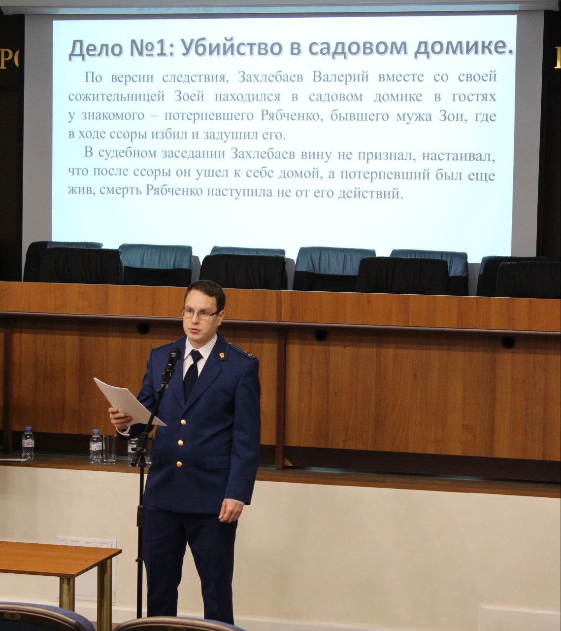 Четыре финалиста из районных прокуратур представили обвинительные речи по учебным уголовным делам.
