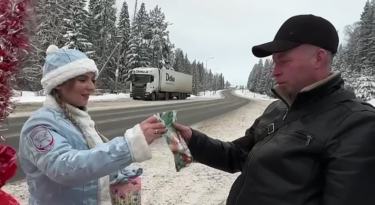 Полицейские Дед Мороз и Снегурочка и сотрудники Госавтоинспекции организовали особенную акцию для водителей и пешеходов.