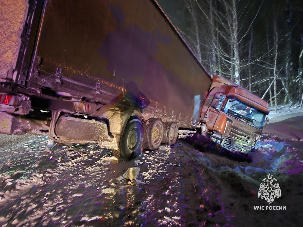 На автодороге Можга-Вавож возле д. Малая Сюга столкнулись легковой автомобиль «Лада Ларгус» и грузовой «Скания».