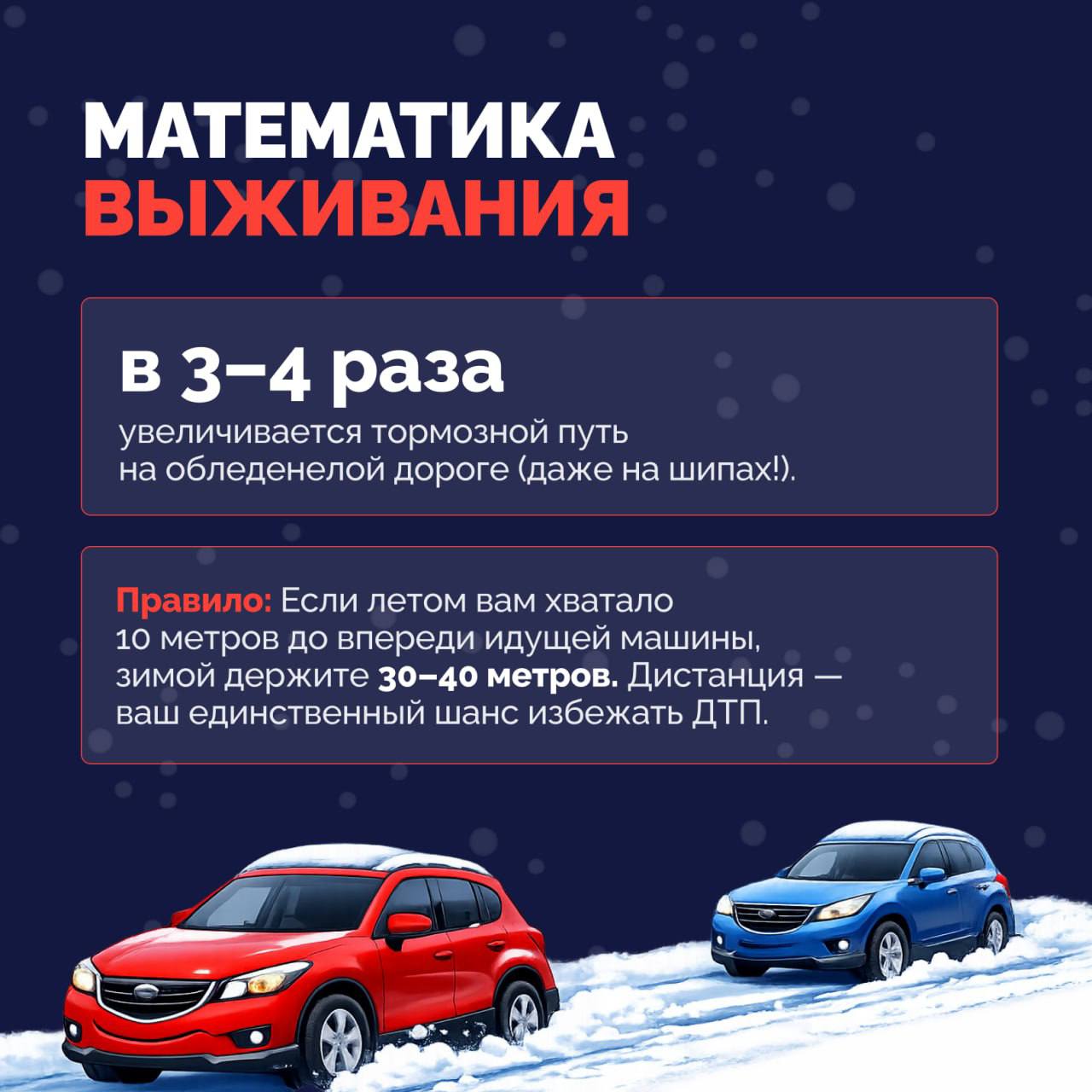 • Насколько длиннее становится тормозной путь на снежной дороге?
