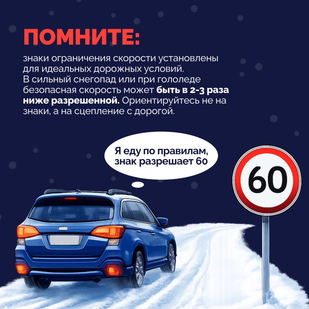 • О чем говорит знак ограничения скорости зимой?