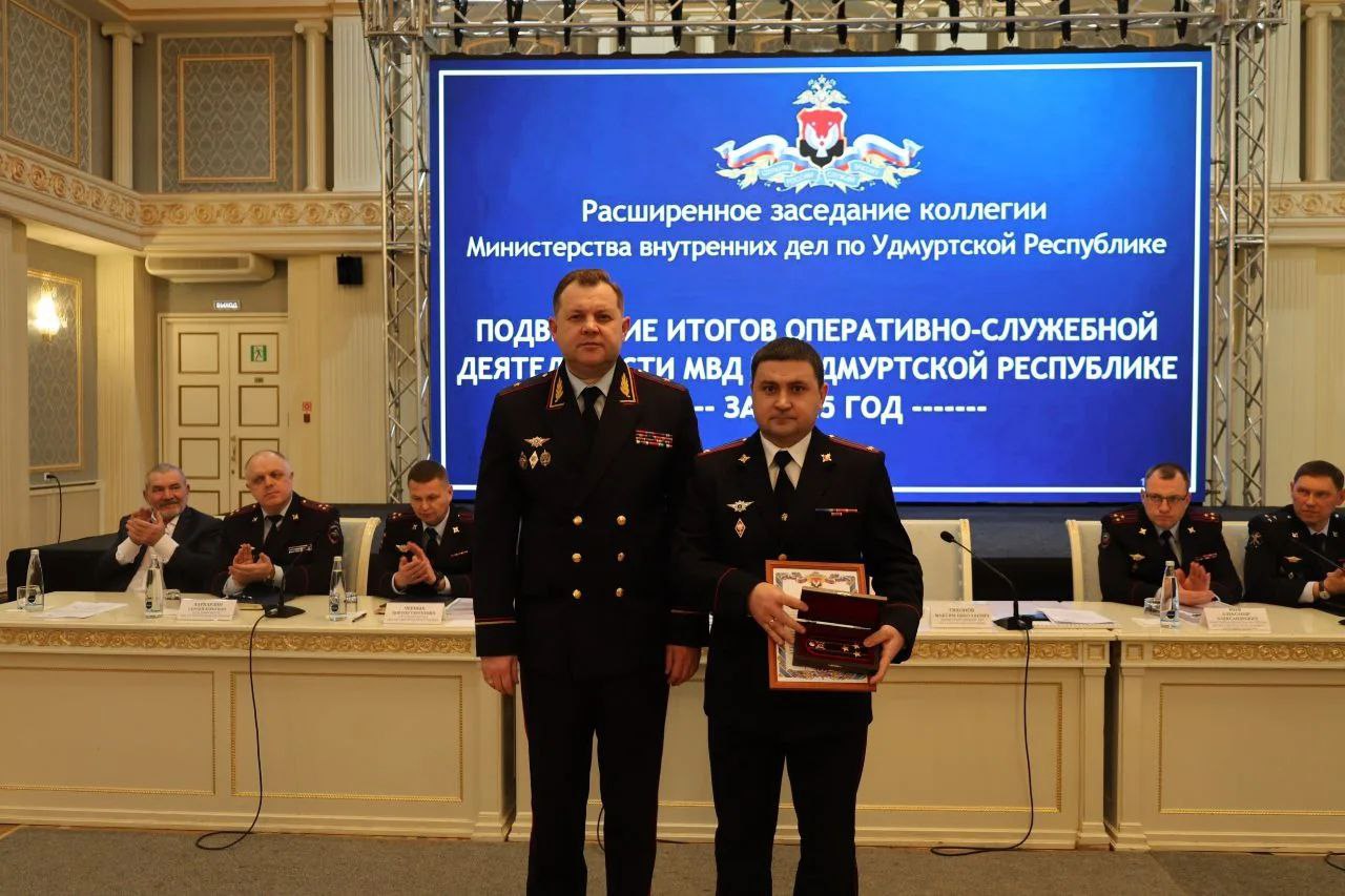 В завершение коллегии Министр внутренних дел по Удмуртской Республике генерал-майор полиции Максим Тихонов наградил отличившихся сотрудников и победителей ежегодного смотра-конкурса. Лучшим территориальным органом МВД России в Удмуртской Республике на районном уровне признан межмуниципальный отдел МВД России «Увинский», лучшим подразделением – Отдельный батальон охраны и конвоирования подозреваемых и обвиняемых МВД по Удмуртской Республике.