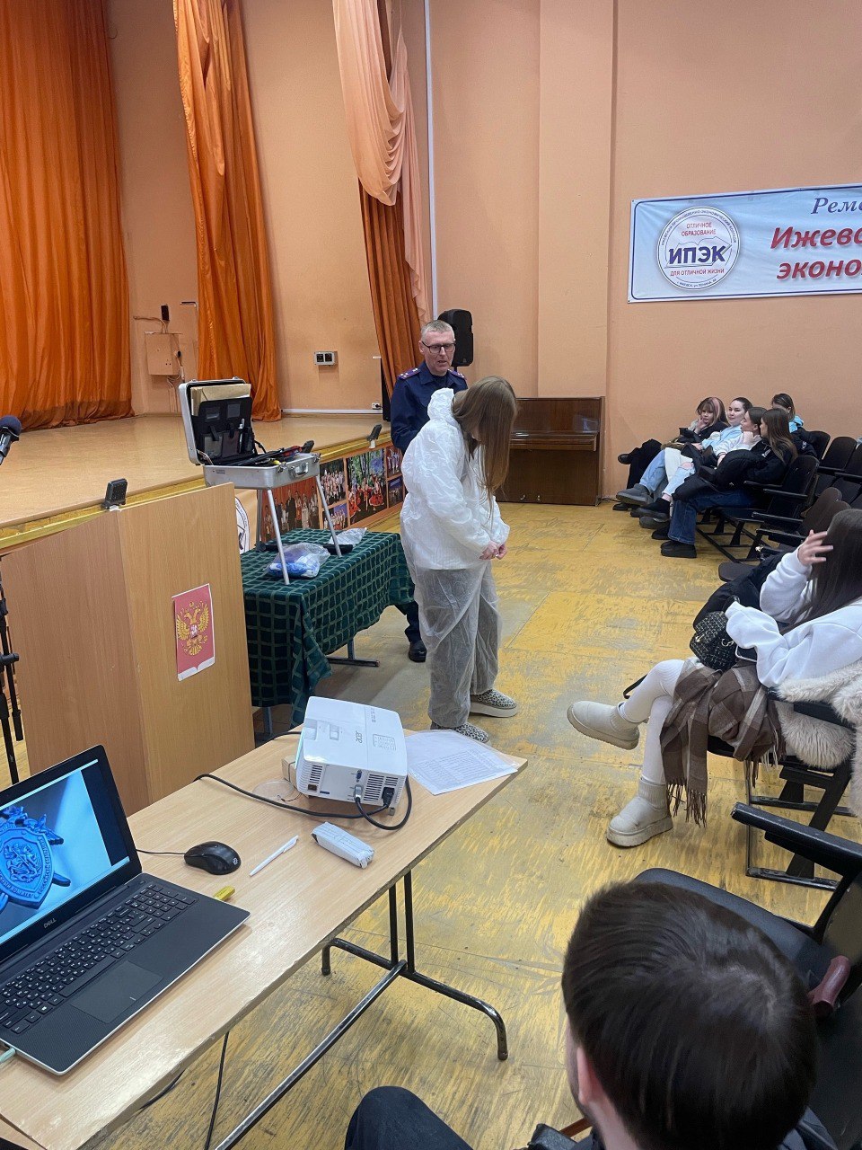 В целях профессиональной ориентации и популяризации службы в следственных органах Следственного комитета России старший следователь-криминалист отдела криминалистики следственного управления СК России по Удмуртской Республике полковник юстиции Андрей Николаевич Леонтьев провел познавательное мероприятие для студентов юридического направления Ижевского промышленно-экономического колледжа.