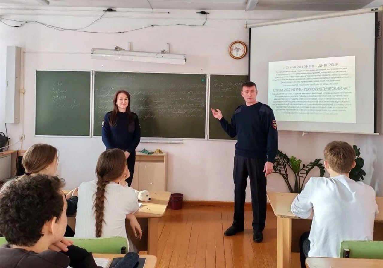 Руководитель линейного отделения полиции отметил, что источником и поводом к совершению преступлений может послужить информация, получаемая в социальных сетях и мессенджерах. Правонарушения, к которым в последнее время склоняют несовершеннолетних посредством сети Интернет, могут быть приравнены к диверсии. Наказание за подобные деяния может составлять от 10 до 20 лет лишения свободы.