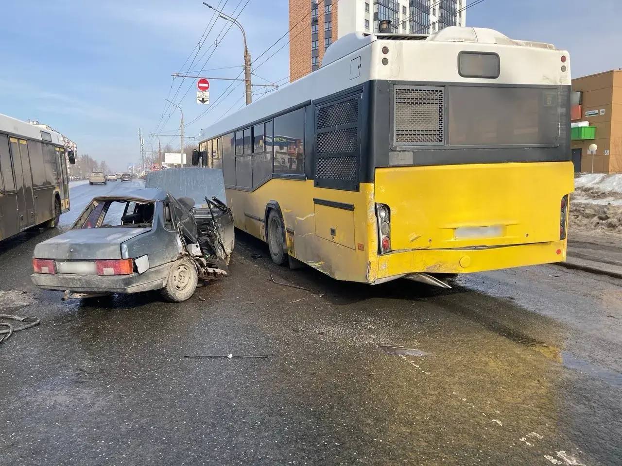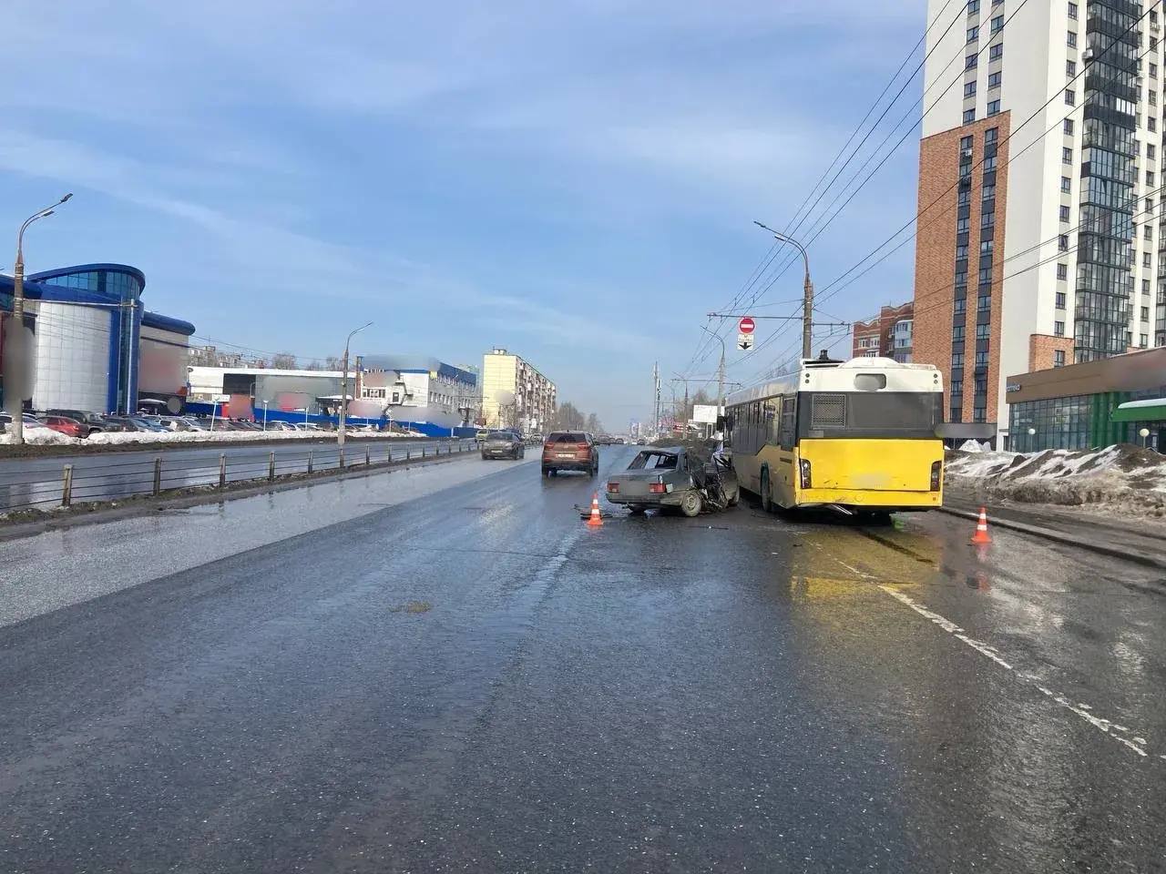 14 марта 2026 года, около 11 часов 30 минут, напротив дома № 282 по ул. Удмуртская в городе Ижевске, 22-летний водитель автомобиля «ВАЗ 21099», при движении в прямом направлении, совершил наезд на стоящий автобус «МАЗ», под управлением 56-летнего мужчины.
