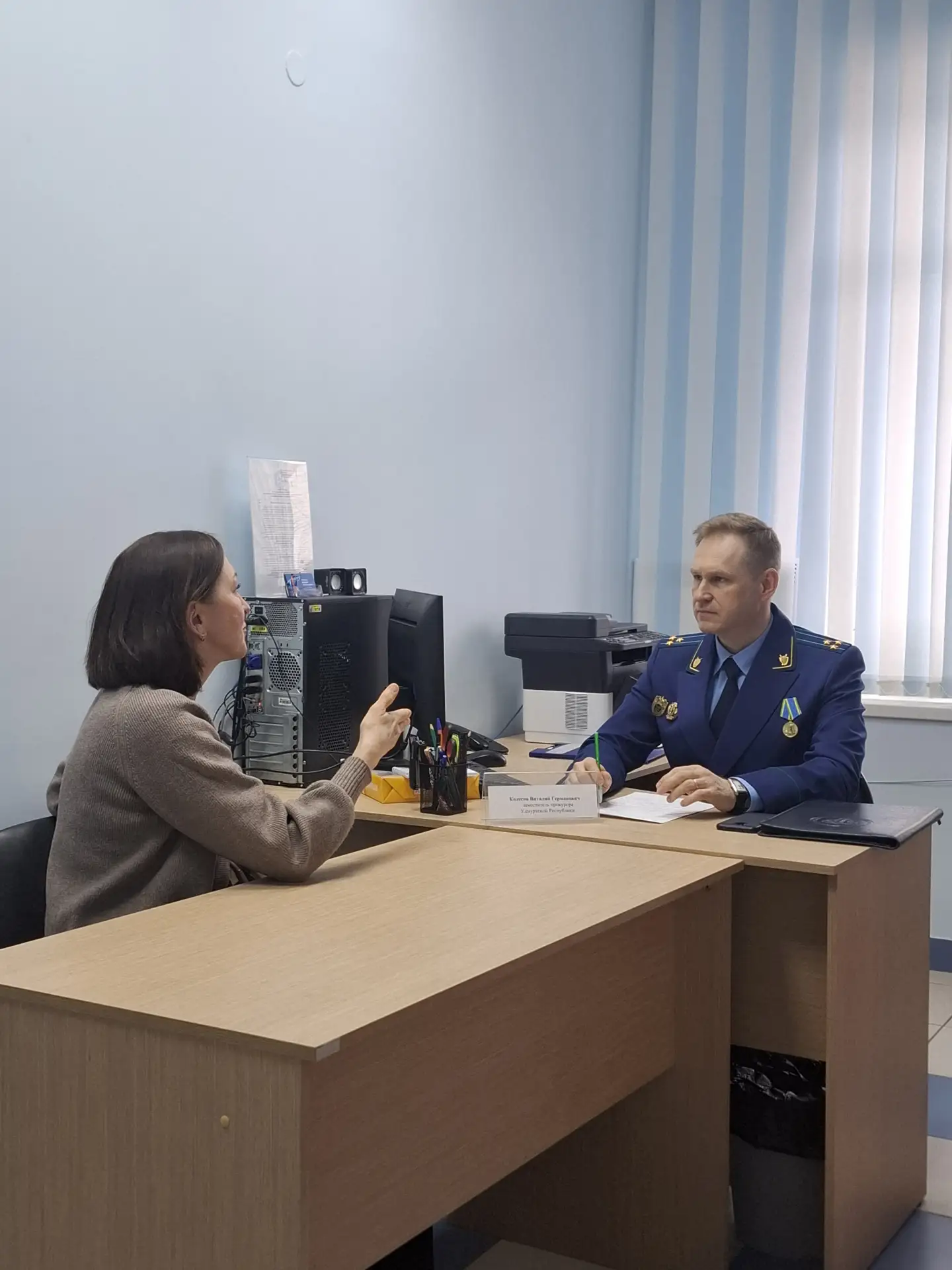 Сегодня, 28 апреля 2026 года, заместитель прокурора Удмуртской Республики Виталий Колесов провел личный прием граждан в региональном отделении Всероссийской организации родителей детей-инвалидов и инвалидов старше 18 лет Удмуртской Республики.