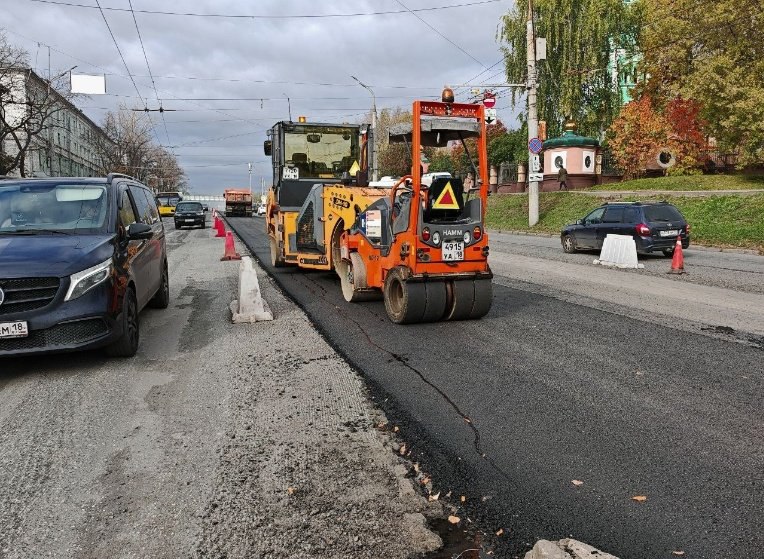 Работы идут на отрезке от улицы Ленина до улицы Красногеройской. Это один из 35 участков, который отремонтируют в Ижевске методом «карт». В их число также входят: