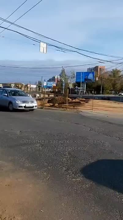 Работы на улице Удмуртской близятся к финалу: теплотрасса под дорогой на перекрёстке с улицами Кирова и Авангардной смонтирована, а котлован уже начали закапывать, скоро здесь будет асфальт