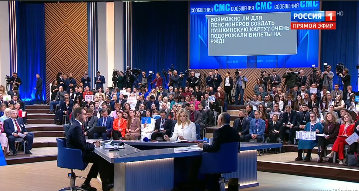 Продолжаем читать разные вопросы от граждан на экране прямой линии Президента России...