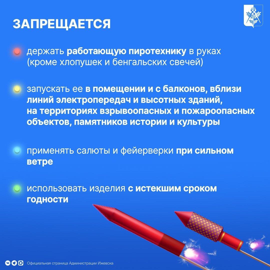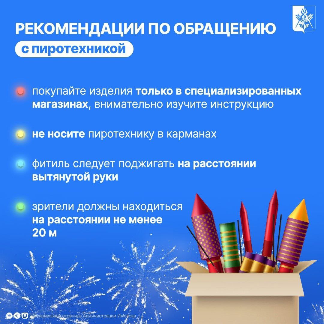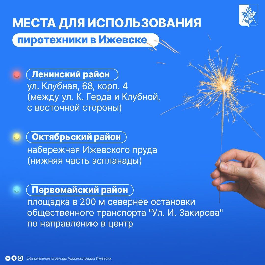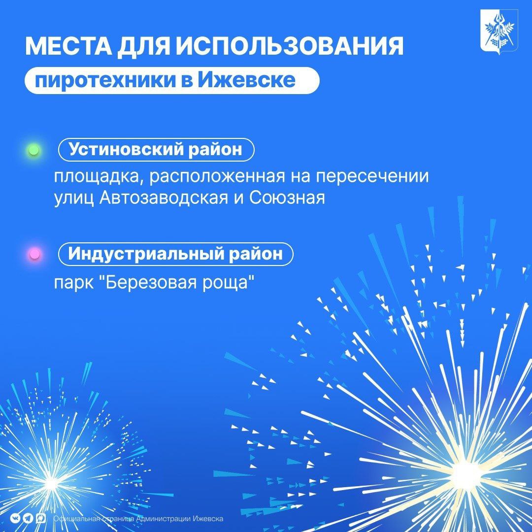 В Ижевске для запуска пиротехники предусмотрены специальные площадки, которые к новогодним праздникам будут расчищены и оборудованы противопожарными материалами.