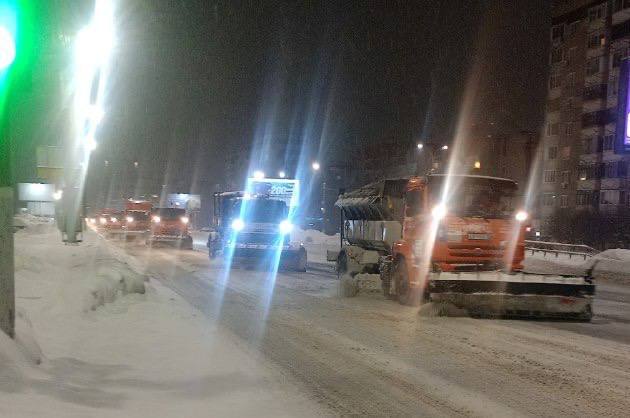 Минувшей ночью на борьбу со снежными заносами вышли 144 единицы техники.