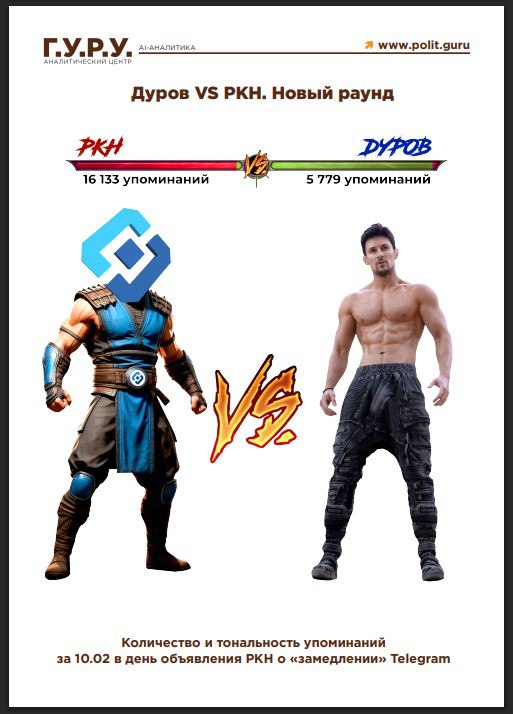 Первая: Дуров VS РКН. Количество и тональность упоминаний за 10 февраля в день объявления РКН о «замедлении» Telegram.