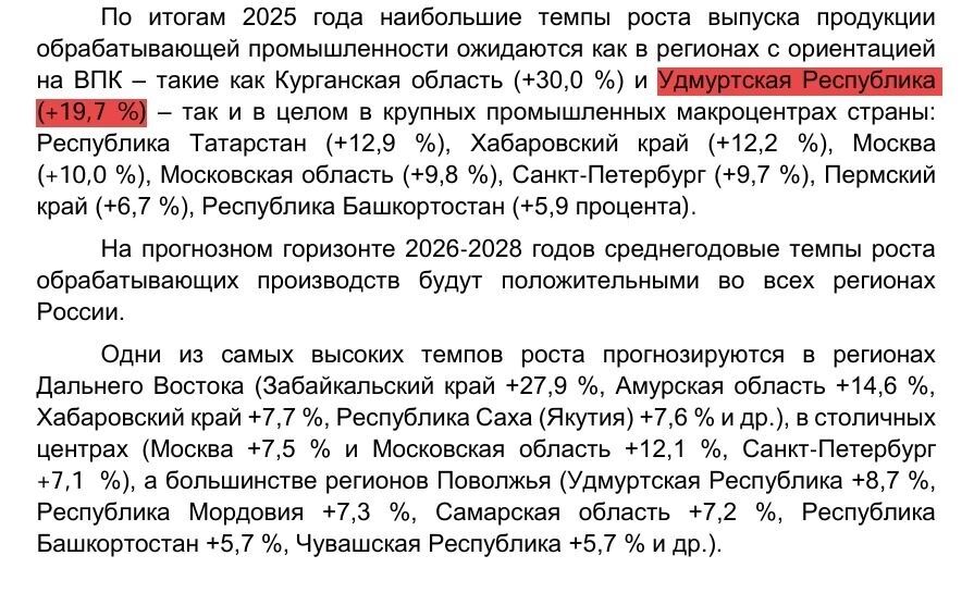 Еще более оптимистичные результаты ожидаются в обрабатывающей отрасли Удмуртии. По росту производства в данной сфере республика также отмечена в числе лидеров в России с показателем +19,7%.
