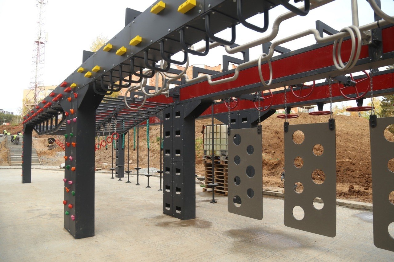 В парке установлен уникальный спортивный комплекс «Русский ниндзя» с 24-метровой рамой, оснащенной множеством снарядов — рулями, досками, канатами, рукоходами, крутящимися кольцами. Позже комплекс, а также детскую и баскетбольную площадки оснастят травмобезопасным покрытием.