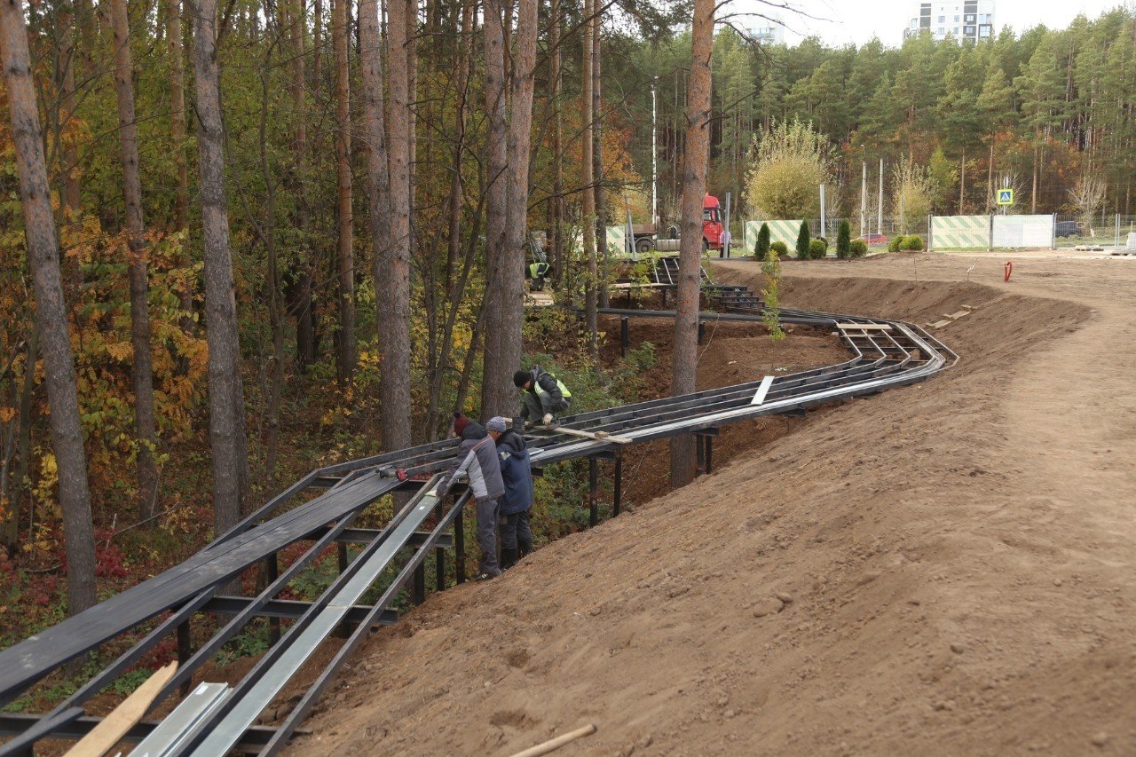 На сегодняшний день в парке обустроены основания всех площадок и амфитеатра, проложены инженерные коммуникации, сделаны локальные очистные сооружения для сбора сточных вод, завершаются укладка брусчатки на пешеходных дорожках и монтаж деревянных настилов, началась установка рамп и скатов на скейт-площадке, сообщила пресс-служба мэрии Ижевска.