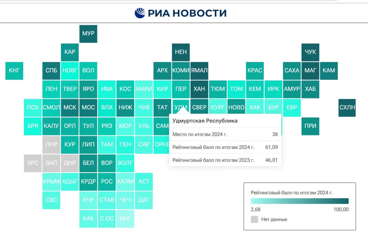 Рейтинговый балл Удмуртии вырос более чем на 15 пунктов.