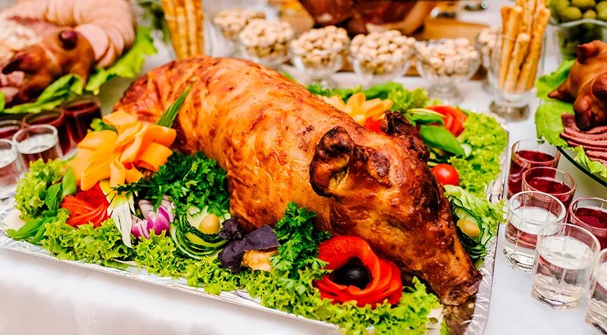 С приходом христианства день святого Василия, который отмечается 14 января, также вошел в традицию празднования. Вот почему Щедрый вечер часто ассоциируется с Василием Великим — покровителем свиноводства. Символом удачи и благополучия в пищевой культуре всегда был запеченный поросенок, который занимает центральное место на праздничном столе.