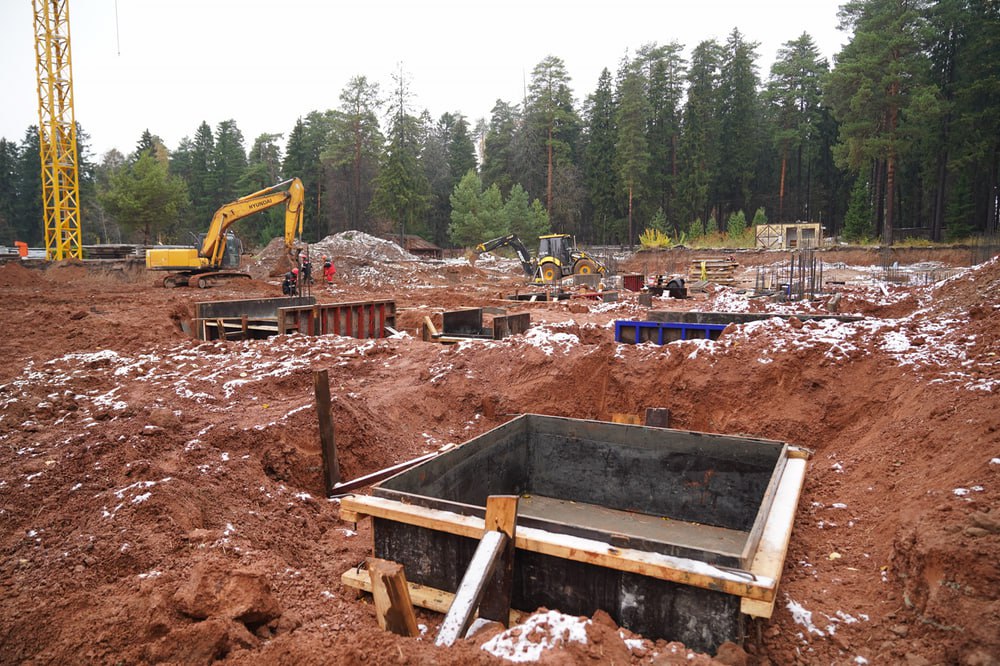 Сейчас на объекте роют котлован, закладывают фундаменты бассейнов и зданий. Как сообщает пресс-служба мэрии, при проведении работ сохранены все деревья. Разрабатывается план таксации территории, планируется убрать только аварийные деревья,