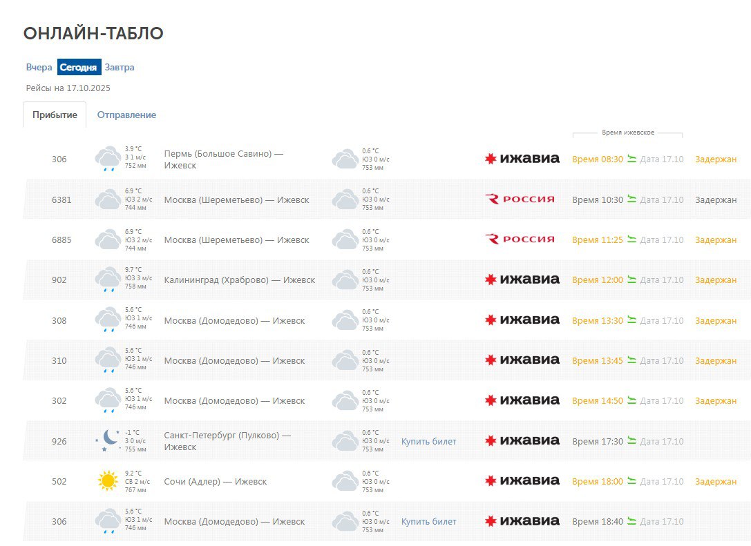 Как показывает в данный момент табло «Ижавиа», пока задержки самолетов из Перми, Москвы и Калининграда продолжаются.