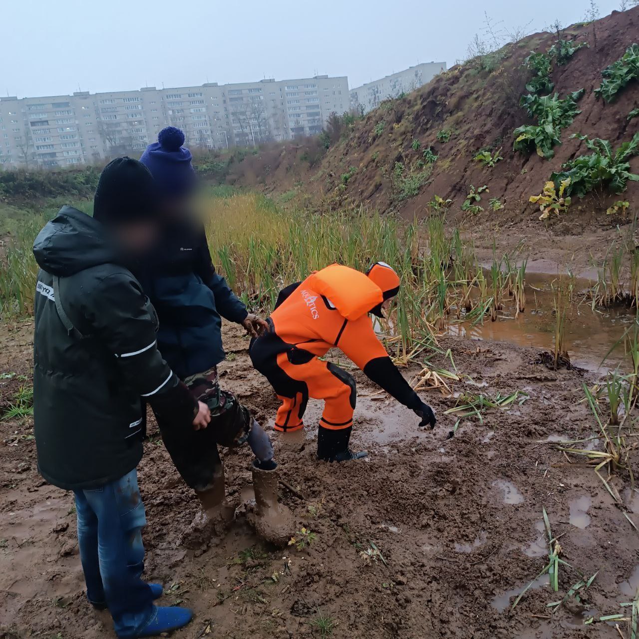Четверо ребят 12-13 лет попали в болото за кафе «Мимино» 18 октября. Двое из них увязли в глине и не могли самостоятельно выбраться — сапоги застряли в глине. Очевидцы позвонили в экстренную службу 112.