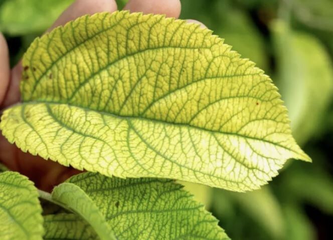- Желтеющие листья: листья становятся жёлтыми, в то время как прожилки остаются зелёными;