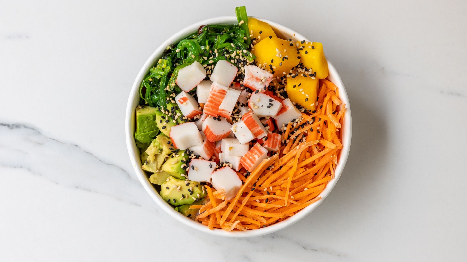 Часто в крабовый салат добавляют отварной рис. Но если заменить его другим продуктом, блюдо приобретет пикантное послевкусие и приятную хрустящую консистенцию. Попробуйте рецепт с корейской морковью.