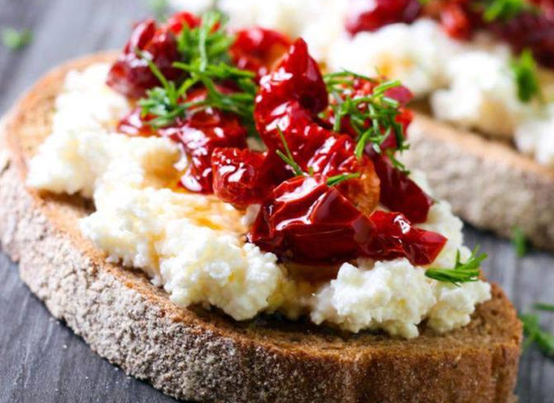 Секрет этой брускетты заключается в гармоничном сочетании мягкой рикотты и насыщенных вяленых томатов. Яркий вкус вяленых помидоров деликатно балансируется кремовой текстурой рикотты, создавая истинный праздник для вкусовых рецепторов. А свежие травы и легкий аромат чеснока добавят завершающие акценты, которые сделают закуску по истине неповторимой.