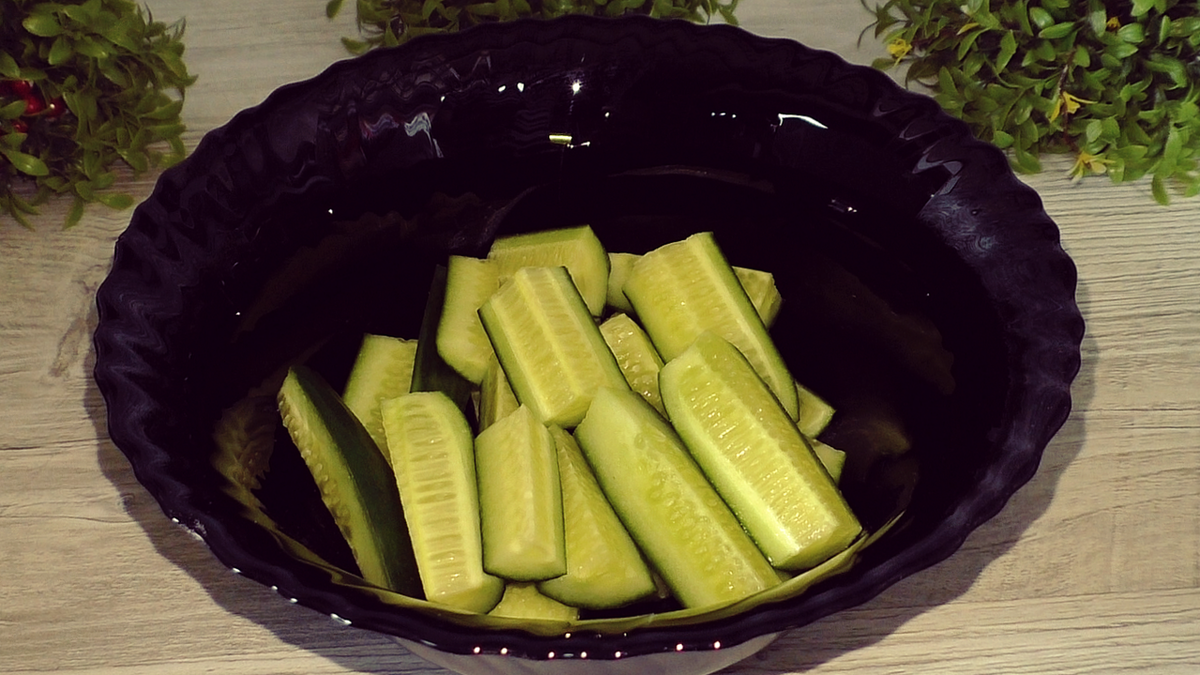 Овощи необходимо подготовить заранее. Огурцы следует нарезать брусочками, а помидоры — на 4-6 долек. После этого помидоры помещаются в общую миску с огурцами. Это легкое сочетание идеально сочетается со свежей зеленью, например, укропом и петрушкой, которая добавит необычайный аромат.