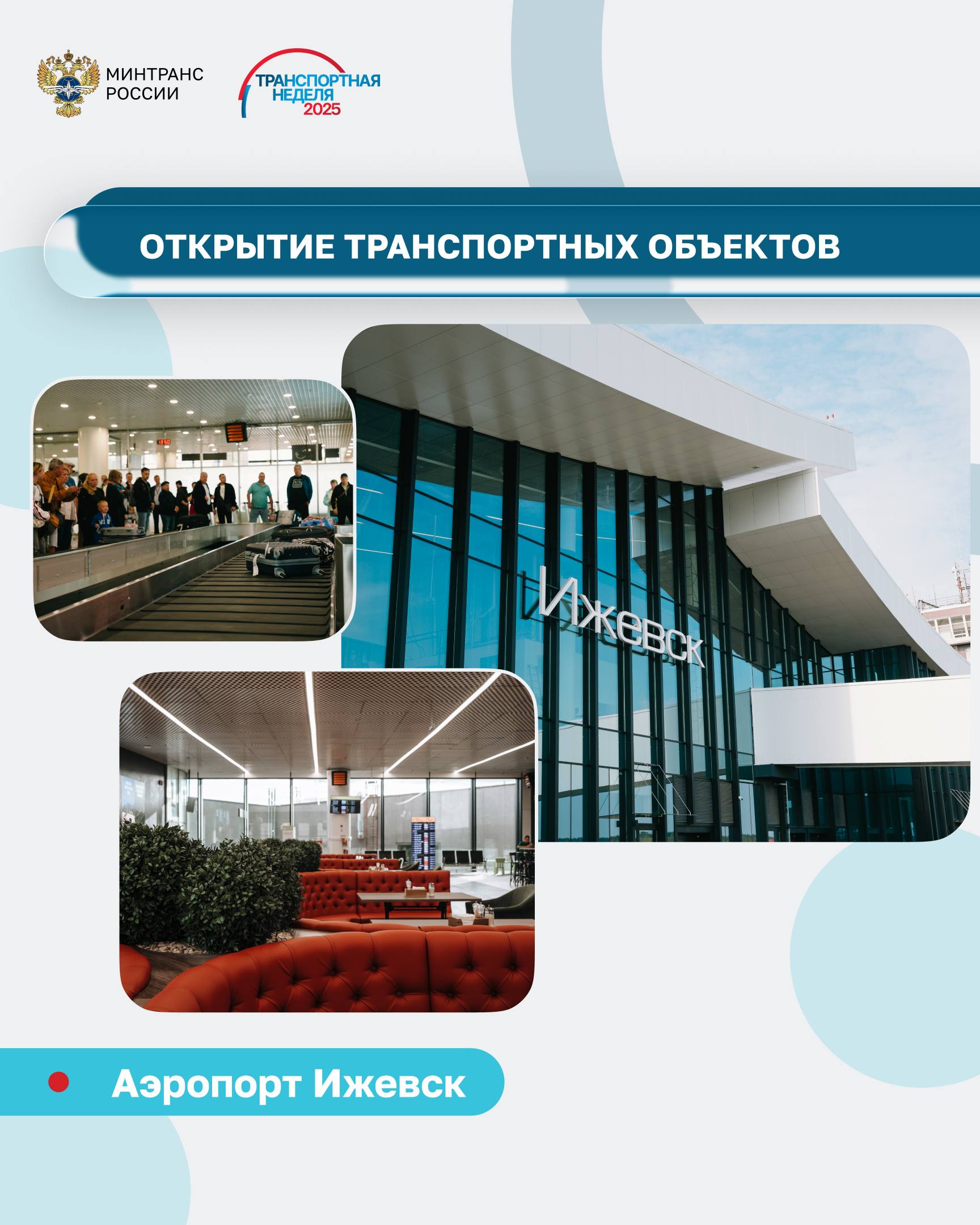 Еще один новый терминал заработал в аэропорту Ижевска имени М.Т. Калашникова. С 2021 по 2024 год рост пассажиропотока здесь составил 60%, а по сравнению с 2018 года показатель вырос в 3 раза. Новый терминал сможет обслуживать до 3,8 млн человек в год.