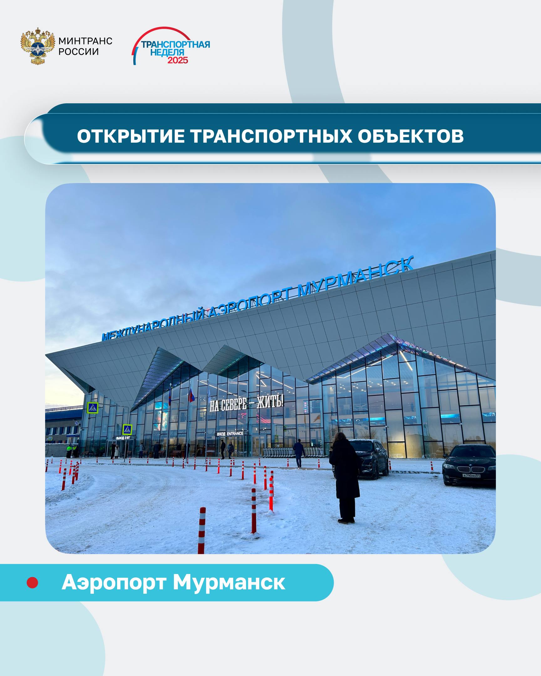 В аэропорту Мурманска ввели в эксплуатацию новый пассажирский терминал, построенный при поддержке ВЭБ.РФ. Его архитектурная концепция вдохновлена природными особенностями региона: козырек над главным фасадом и фасад со стороны перрона повторяют контур гор Хибин.