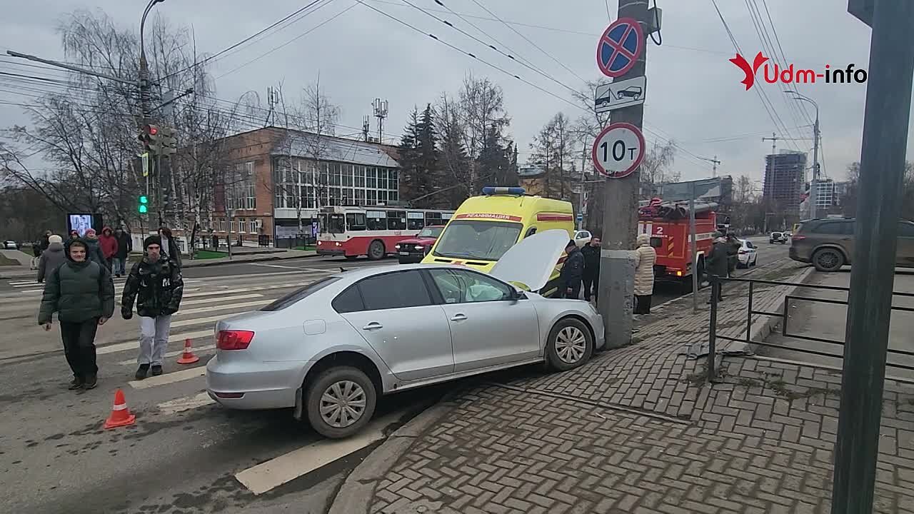 ДТП на Пушкинской в Ижевске — автомобиль вылетел на тротуар у торгового центра «Сигма».
