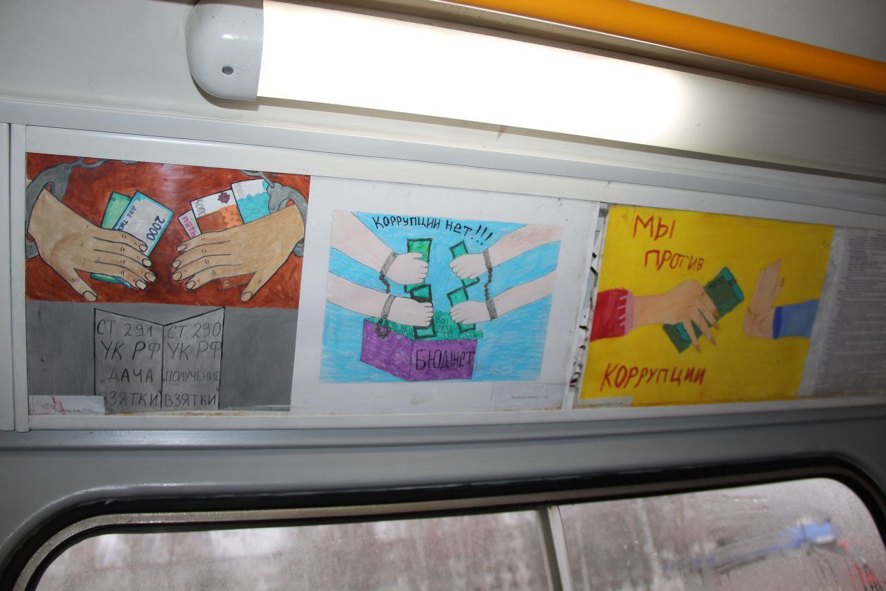 В преддверии Международного дня борьбы с коррупцией (9 декабря) прокуратура Первомайского района Ижевска совместно с «ИжГЭТ» проводит просветительскую акцию, сообщает пресс-служба предприятия. В трамвае 9-го маршрута размещены детские рисунки на тему противодействия коррупции.