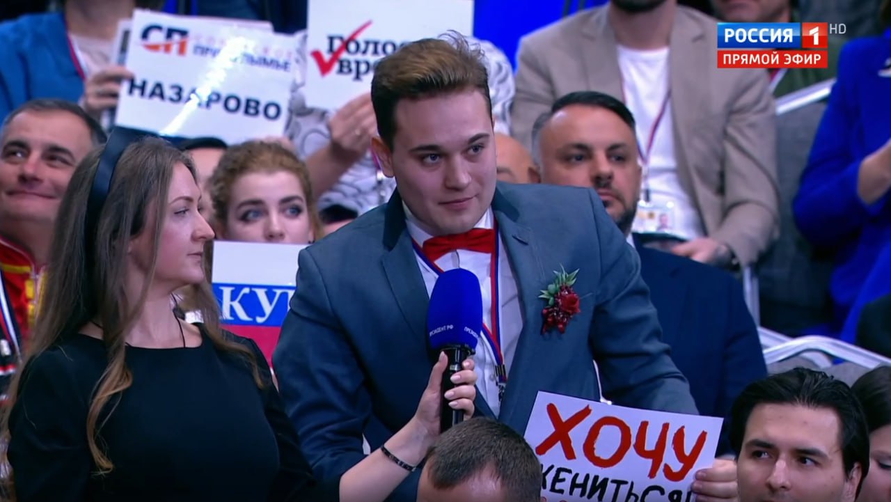 Звездой Прямой линии Президента России стал парень из Екатеринбурга, который прямо в эфире сделал предложение своей девушке Оле и пригласил президента на свадьбу.