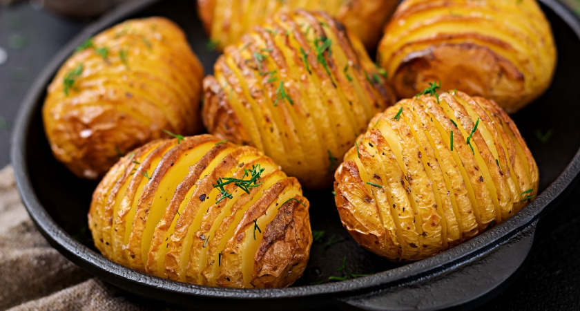 Технология приготовления картофеля гармошкой заключается в том, что клубни нарезаются тонкими надрезами, при этом не дойдя до конца. Такой подход позволяет специям, сыру и маслу равномерно распределиться внутри, создавая неповторимую текстуру и вкус. Нежный камамбер служит намазкой, придавая сливочную нотку и аромат, в то время как паприка добавляет яркость и настроение.