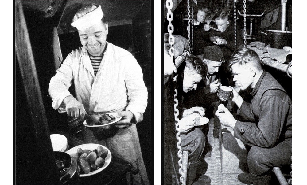 Во время войны СССР страдал от потери лучших сельхозугодий, поэтому запасы продовольствия доставались зачастую с трудом. Импортные мясные консервы и специализированные продукты обеспечивали подводников всем необходимым. В то время как большинство других родов войск имели скромные пайки, подводники находились в более выгодной ситуации благодаря нужным в условиях моря калорийным и питательным продуктам.