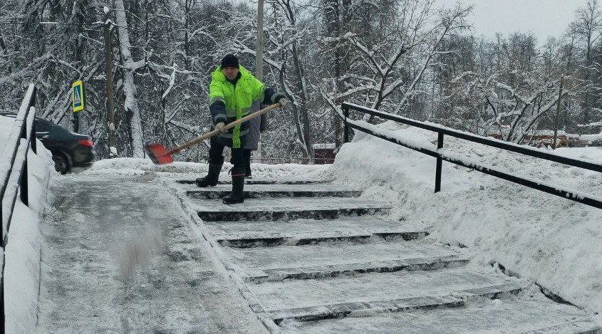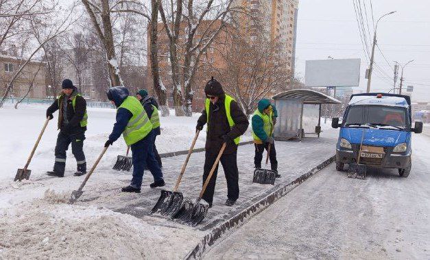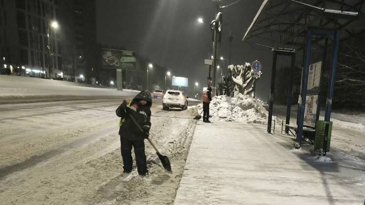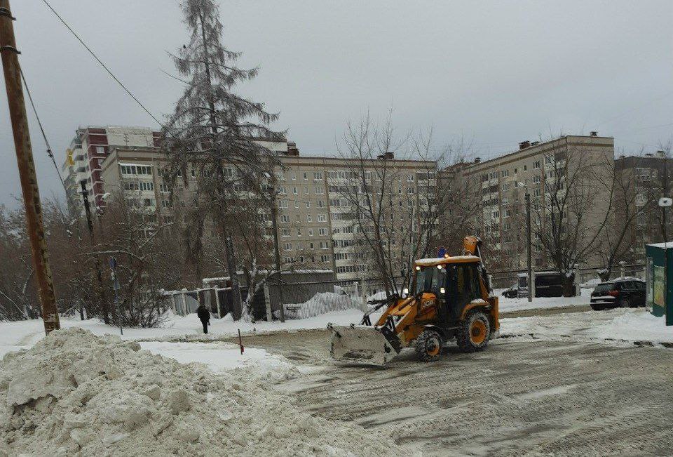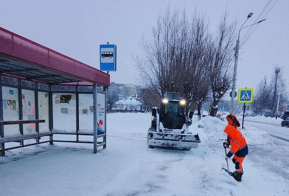 Сегодня днем в городе работают 112 машин и 120 рабочих-ручников, они расширяют проезды, чистят дороги, тротуары, остановки, гостевые стоянки, лестничные сходы.
