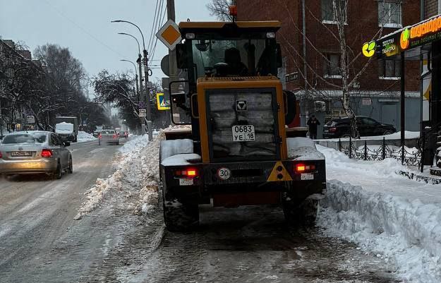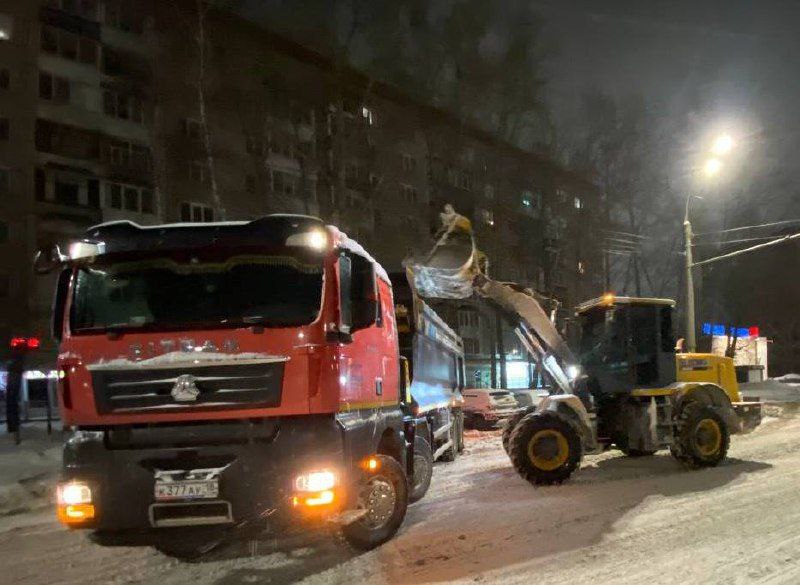 За ночь вывезли 11,5 тысяч кубометров снега: с улиц Ленина, Удмуртская, Пушкинская, Кирова, Воровского, 40 лет Победы, К. Маркса, Майская др.