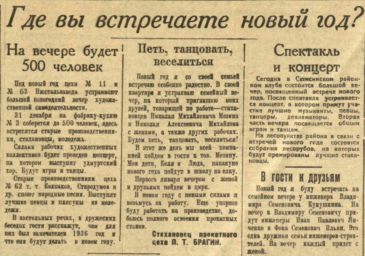А как ижевцы/ижевчане планировали встретить новый 1937 год, переломный для СССР и для всего мира