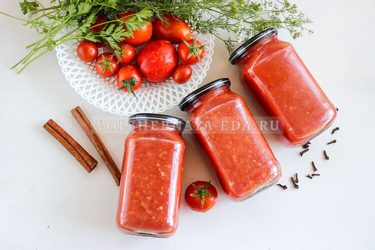 Вернув соус на плиту, добавьте в него соль, сахар и все приготовленные специи, включая чеснок. Варите еще около 30 минут, регулируя вкус по своему усмотрению. Параллельно развести крахмал в воде и, непрерывно помешивая, добавить его в кипящий кетчуп. После 5 минут варки продукт готов к разливу по стерилизованным банкам.