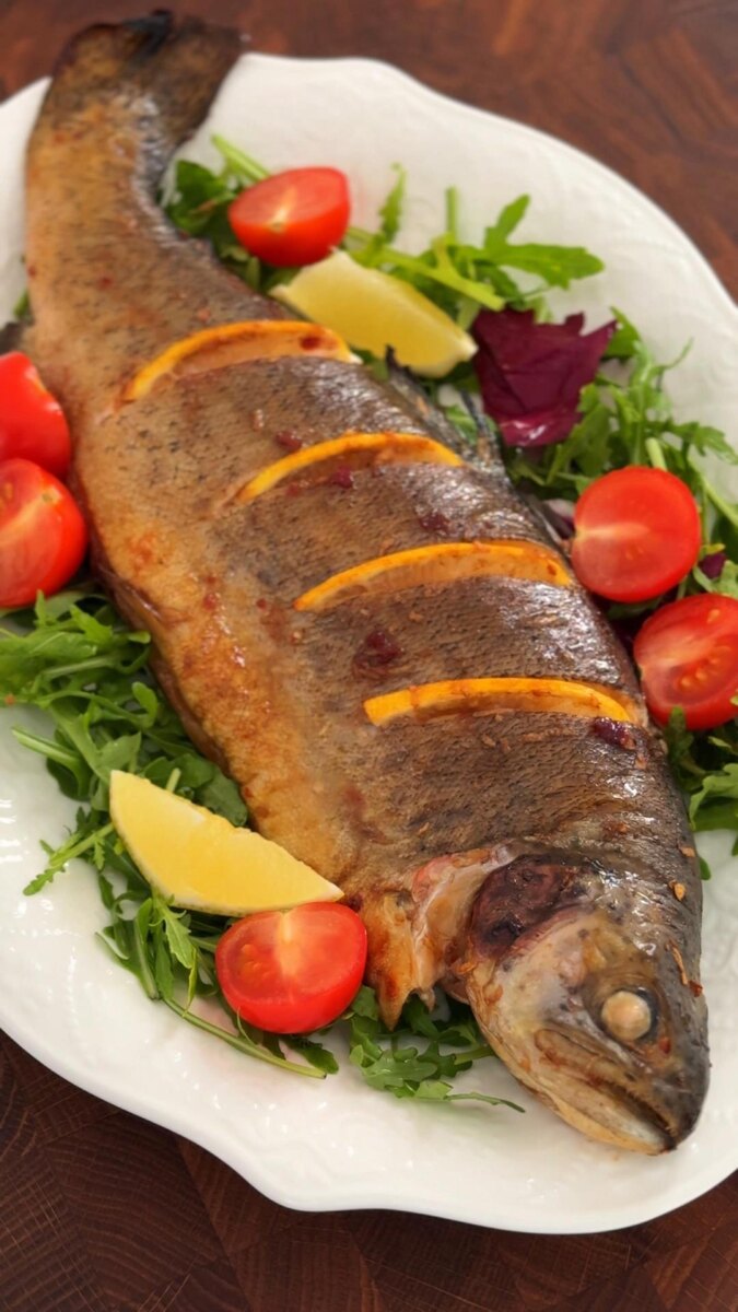 Эта радужная форель станет не только вкусным угощением, но и несомненно привлечёт внимание гостям. Приятного аппетита!