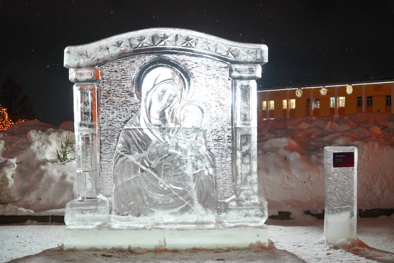 Всего более 30 ледовых скульптур на библейские темы: «Ангел-хранитель», «Ангел крещения», «Разговор с ангелом», «Архангел Михаил» и другие. Композиции дополнены вечерней подсветкой.