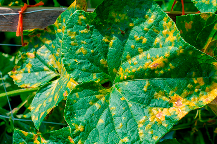 Светло-жёлтые пятна на листьях и серо-фиолетовый налёт под ними — тревожные симптомы, которые сигнализируют о начале болезни. Игнорирование этих признаков может привести к остановке роста плодов и даже их деформации.
