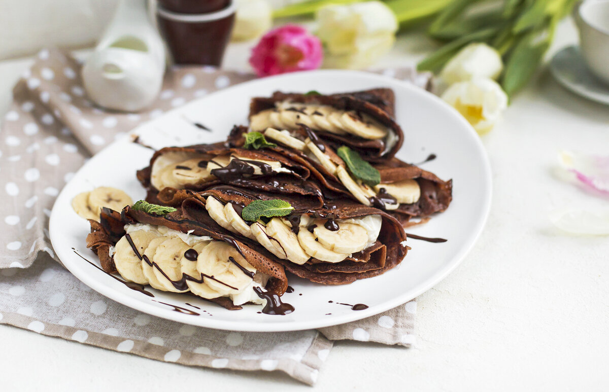 Шоколадные блинчики с творожным кремом и бананом: идеальный завтрак для сладкоежек