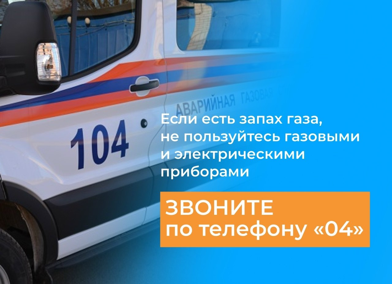 При авариях, утечке газа, неисправностях газового оборудования из незагазованного помещения звоните в аварийно-спасательную службу по номерам 04, 104 или 112.