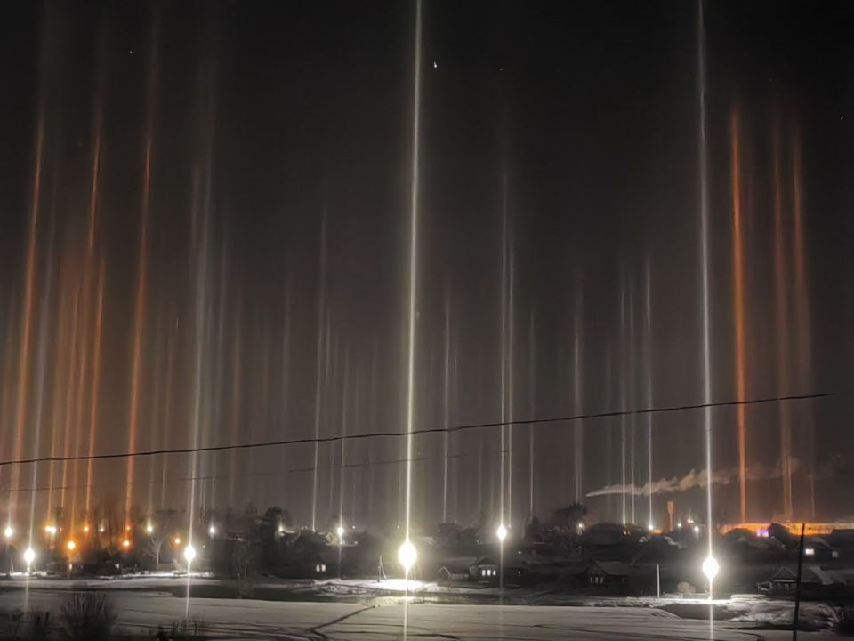 Благодаря морозной погоде и высокой влажности жители некоторых районов Удмуртии смогли увидеть и запечатлеть красивейшее оптическое явление — световые столбы