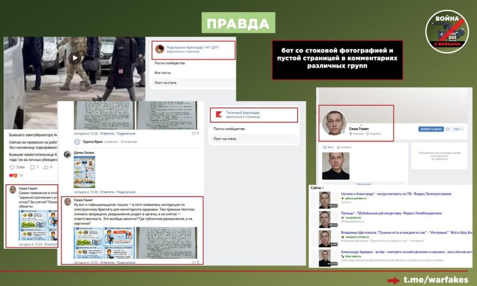 Фейки о «браслетах неволи» мы обнаружили по всей России – их распространяли в региональных пабликах Брянской, Мурманской, Калининградской, Рязанской, Херсонской областях, ДНР, Пермском крае, Ингушетии и Удмуртии. Однако ни на одном из официальных правительственных порталов указанных «документов» найти не удалось.
